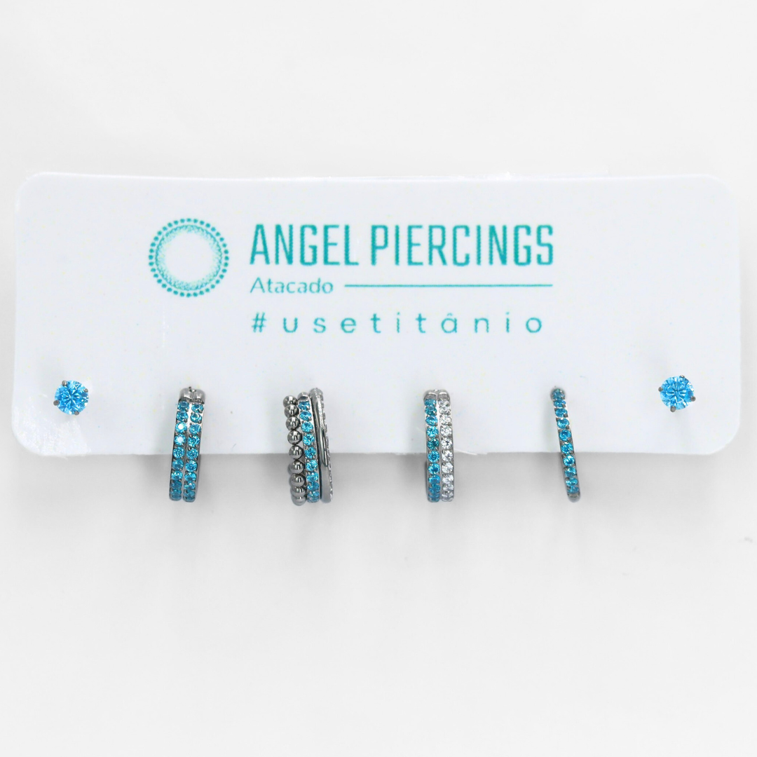 KIT13 Labret Argola Zircônia Azul Titânio ASTM F-136