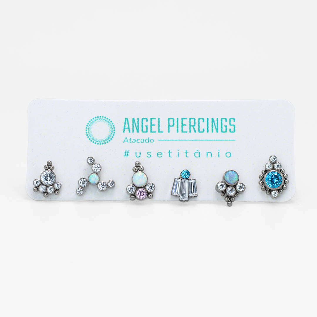 KIT34 Labrets Pedras Cristais E Opalas Titânio ASTM F-136
