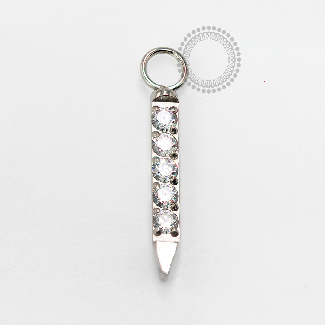 Aplicação Ideal:Os pingentes são uma excelente adição para combinações de piercings, podendo ser utilizado em brincos, conectores de piercings no lóbulo ou tragus, e até mesmo em peças de body jewelry, como em piercings de septo. Sua forma única e estilizada permite criar looks ousados e personalizados.