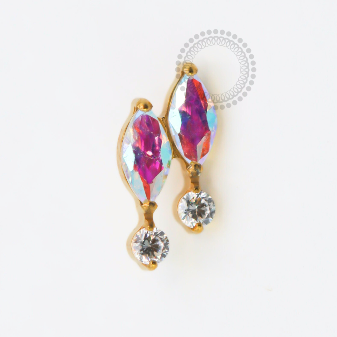 TN1785 Topo 2 Navetes Boreal E Dois Pontos De Luz Cristal Titânio PVD Gold