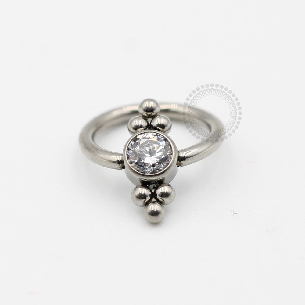 Descrição: Ideal para lóbulos, cartilagem, septo, daith e outros piercings, oferecendo um ajuste confortável e seguro. É uma joia cheia de estilo
