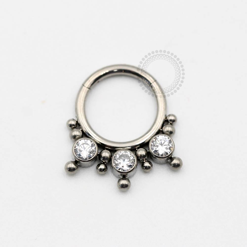 Descrição: Ideal para septo, daith, cartilagem,helix, lóbulo, entre outros, oferecendo um ajuste confortável e seguro. É uma joia cheia de estilo