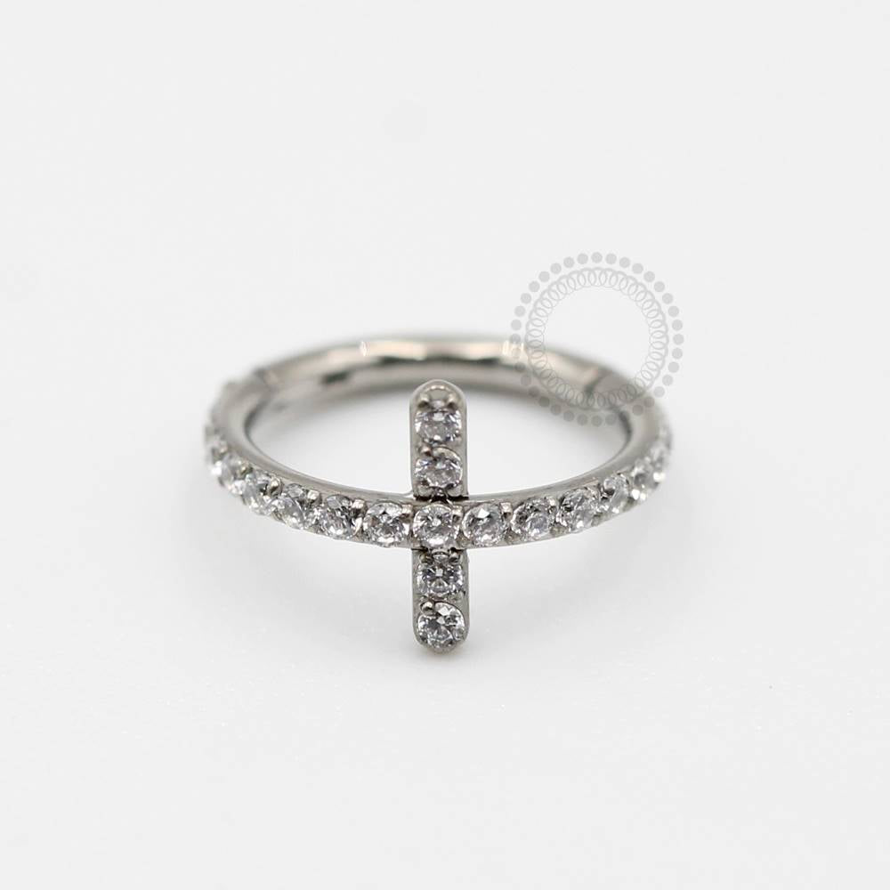 TN437 Segmento Cruz Cravejado Titanio ASTM F136