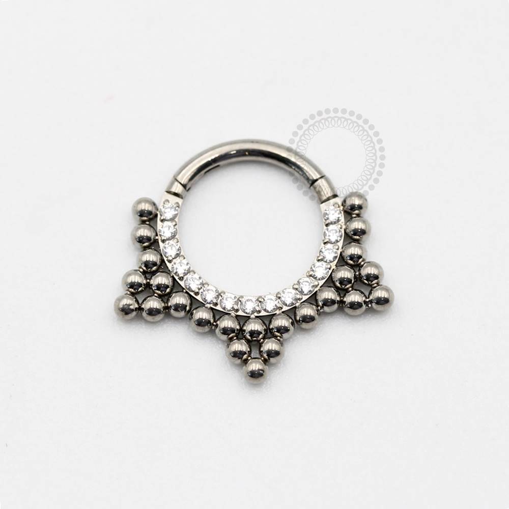 Descrição: Ideal para septo, daith, cartilagem,helix, lóbulo, entre outros, oferecendo um ajuste confortável e seguro. É uma joia cheia de estilo