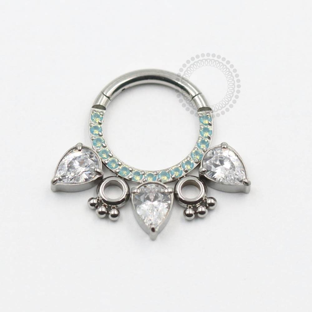 TN530 Segmento Gotas CZ Opalite Green Titânio ASTM F136