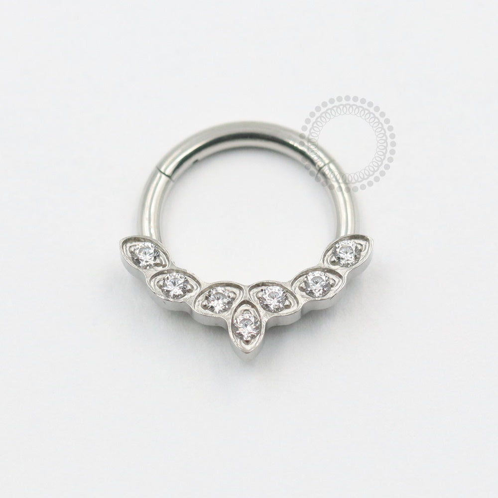 Descrição: Ideal para septo,daith,helix,cartilagem, entre outros, oferecendo um ajuste confortável e seguro. É uma joia cheia de estilo
