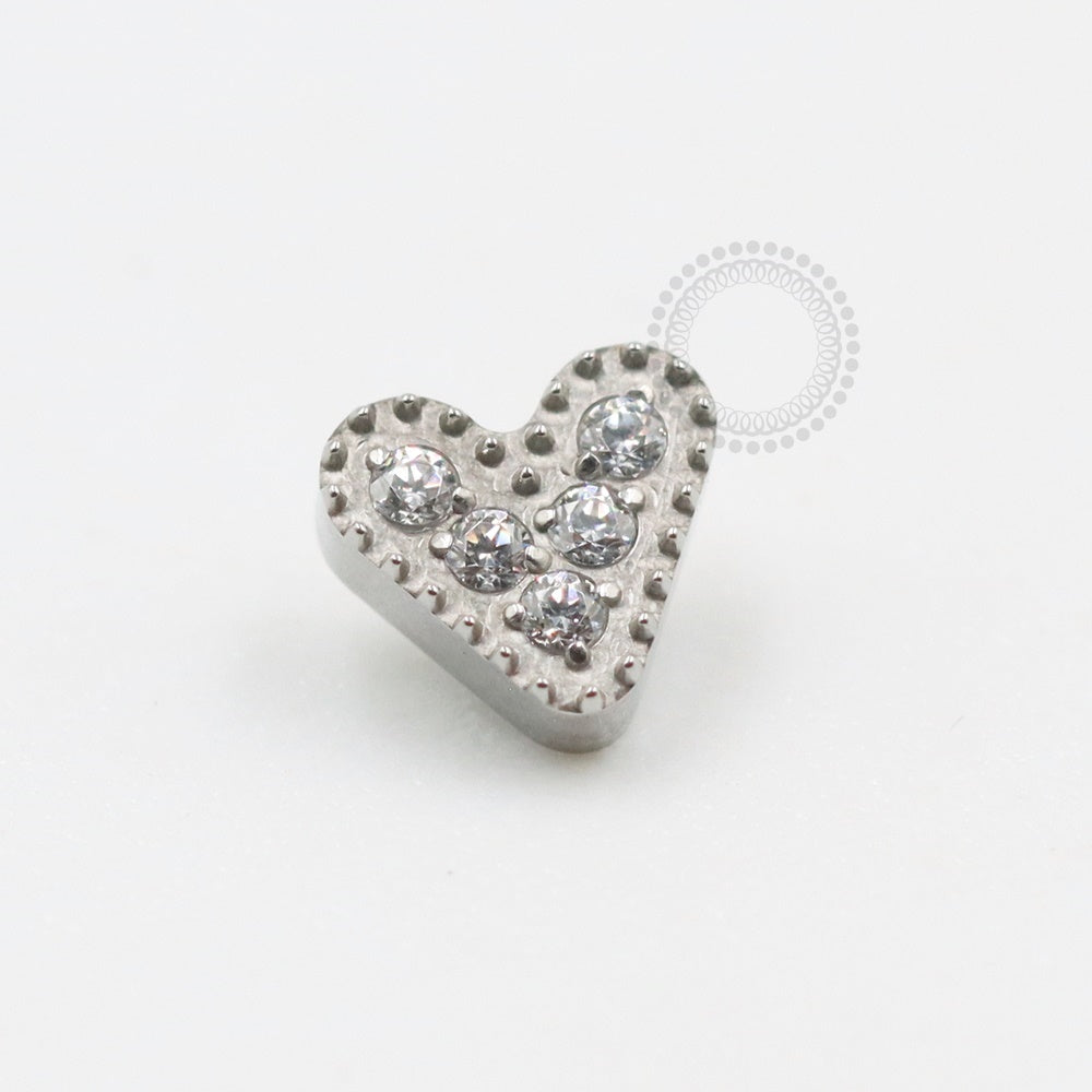 TN647 Topo Mini Coração Cravejado Titânio ASTM F136
