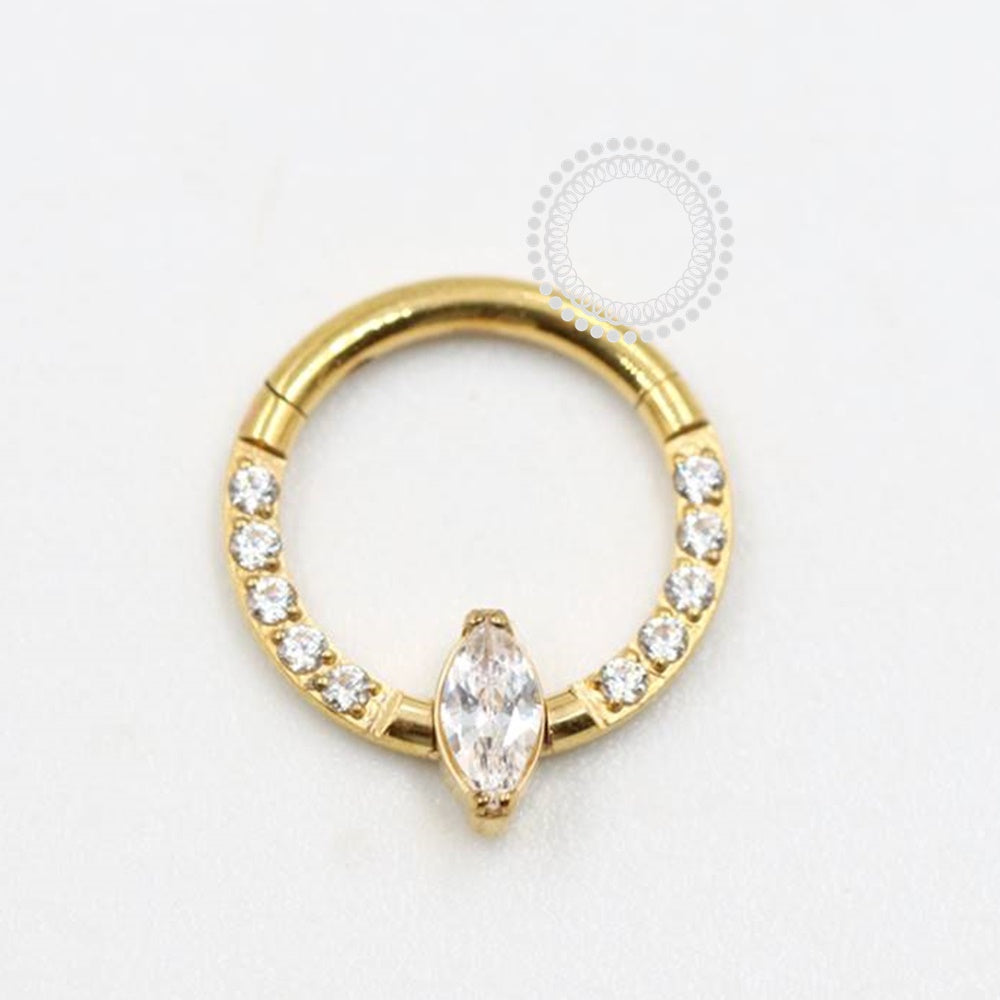 Descrição: Ideal para cartilagem, lóbulo, helix,septo, daith, entre outros piercings, oferecendo um ajuste confortável e seguro. É uma joia cheia de estilo.