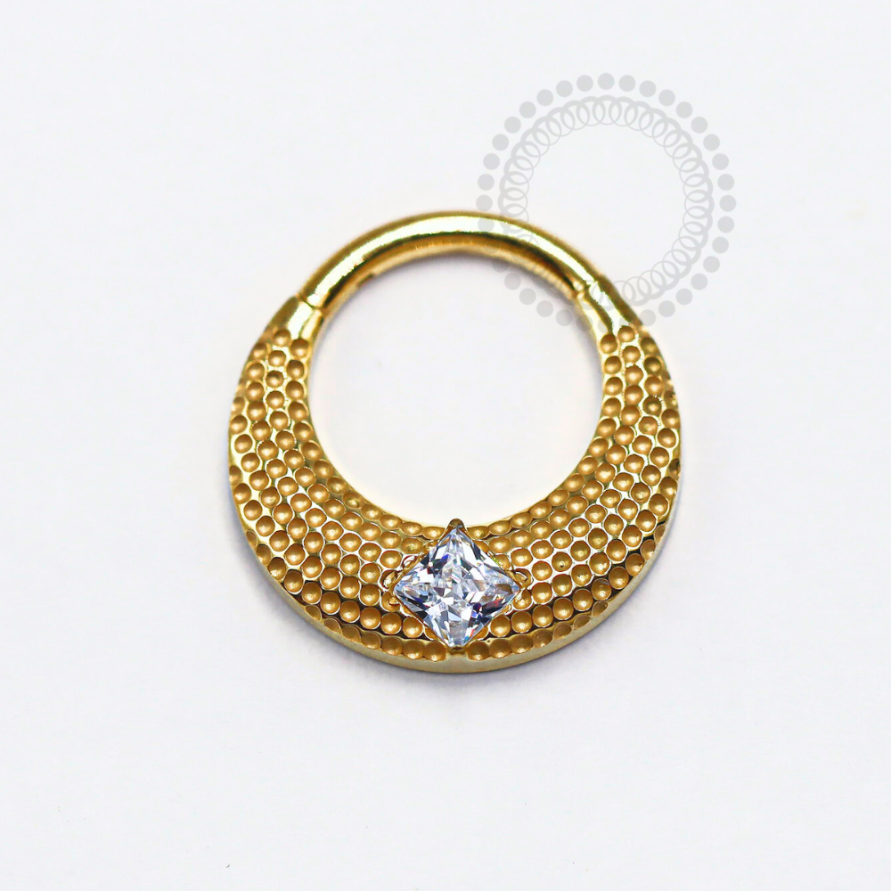 Descrição: Ideal para cartilagem, lóbulo, helix, entre outros piercings, oferecendo um ajuste confortável e seguro. É uma joia cheia de estilo.