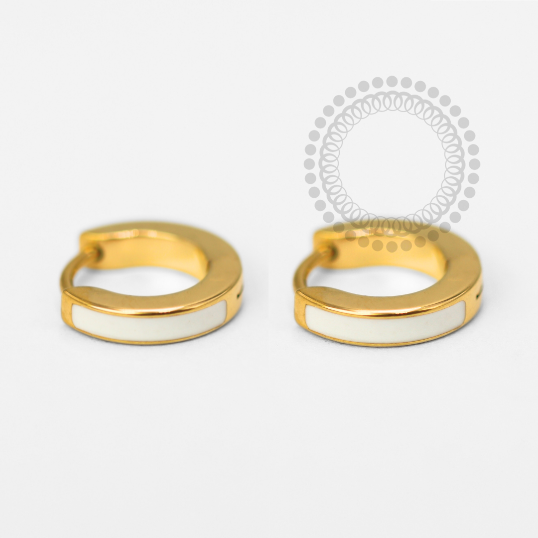 TN1762 Par De Brincos Liso Faixa Branca Titânio PVD Gold