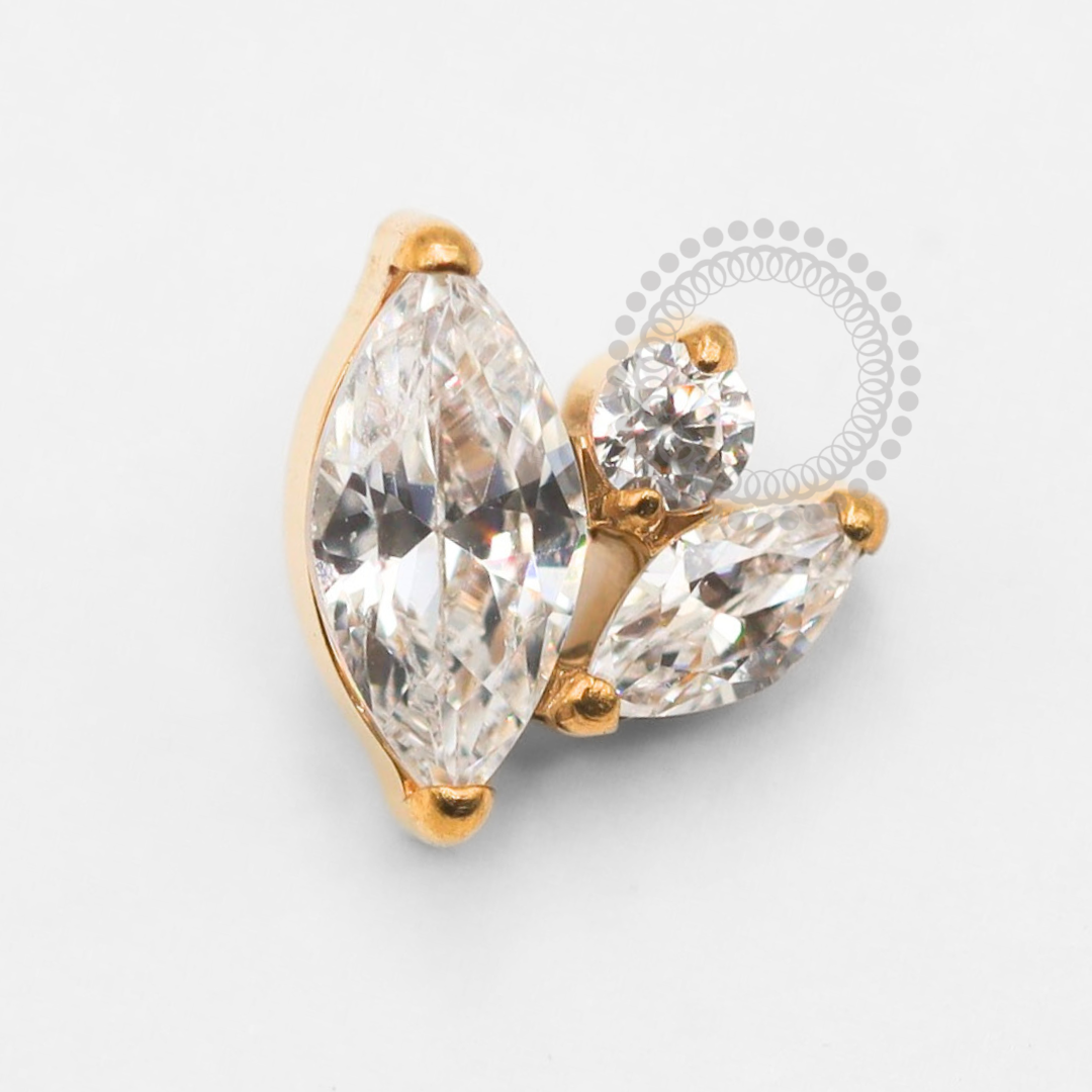- Titânio PVD Gold: O titânio PVD gold é um material altamente resistente, ideal para piercings devido à sua durabilidade e segurança. Ele recebe um revestimento dourado através do processo PVD (Physical Vapor Deposition), que garante cor intensa e longa duração. Hipoalergênico, é perfeito para peles sensíveis, evitando irritações. Além disso, é elegante e de alto desempenho.