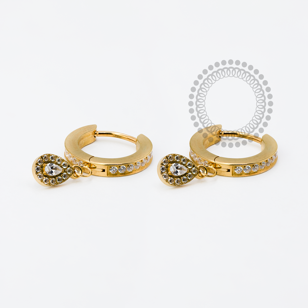 TN1950 Par de Brincos CZ Pingente Gota Titânio PVD Gold
