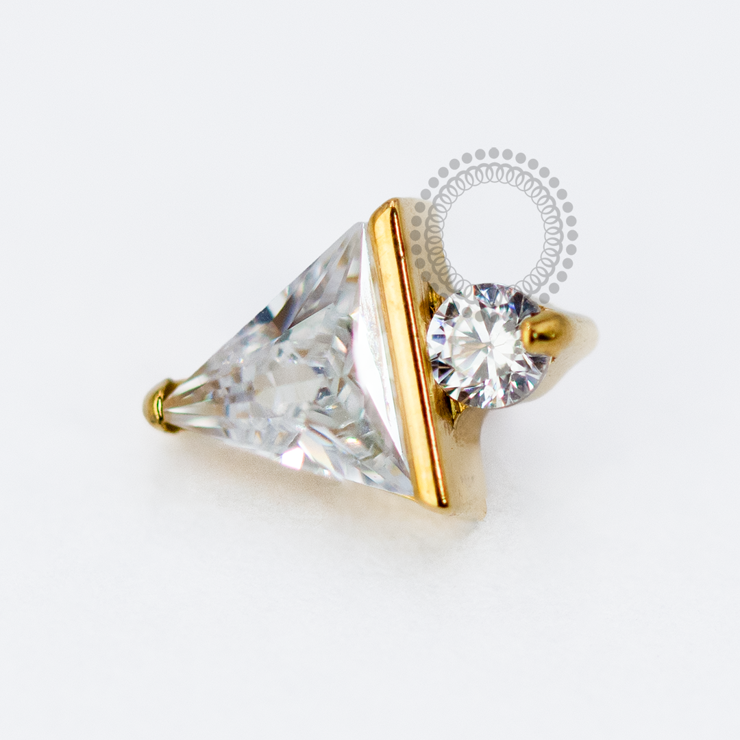 TN1701 Topo Triângulo CZ e Zirconia Titânio PVD Gold